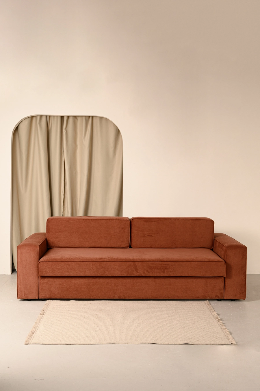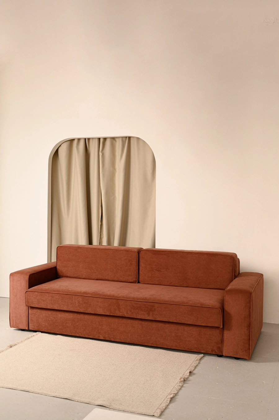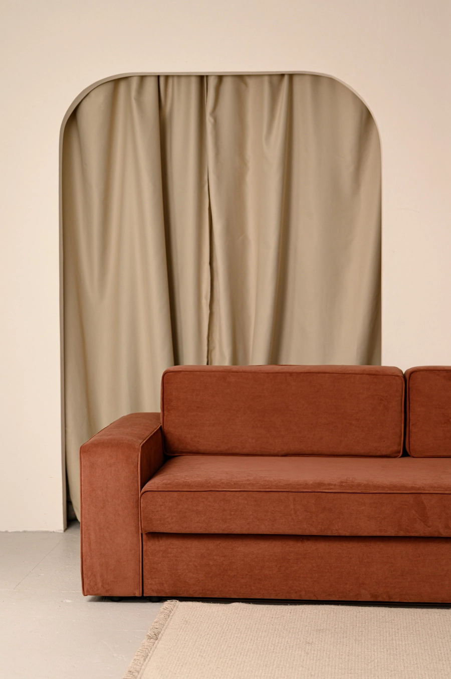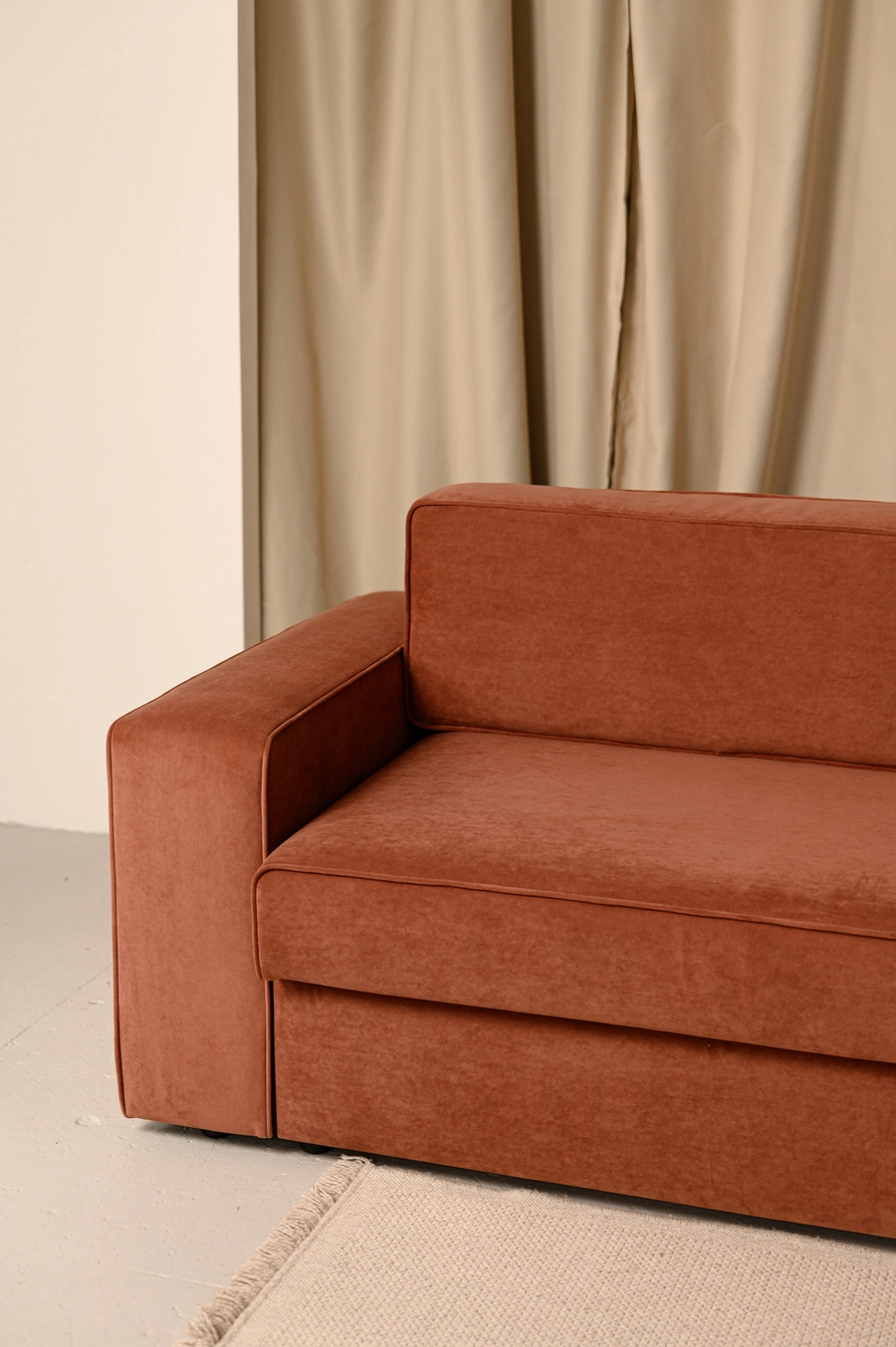 Двухместный диван кирпичного цвета в гостиной
