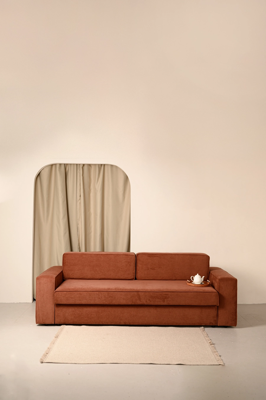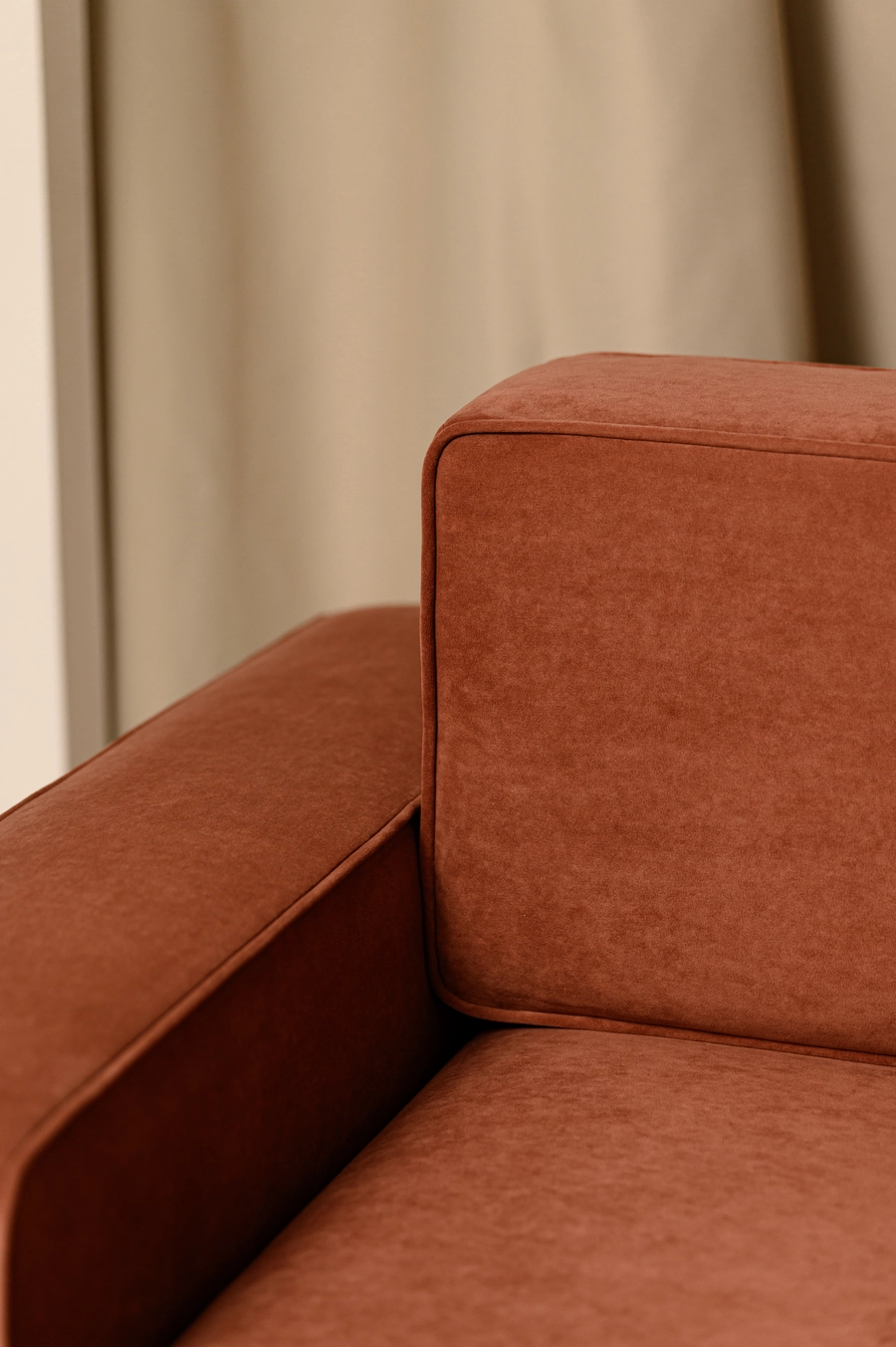 «Дюнара» — это воплощение архитектурной строгости и природной пластики. Его чёткие формы и выверенные линии напоминают очертания песчаных дюн, застывших в моменте. Вшитый кант по периметру всех элементов подчёркивает геометрию и придаёт модели графическую завершённость.